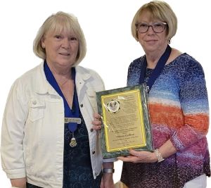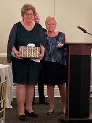 LAOH Division 1 President, Judy McLaughlin (left), presented the 2023 Lady Hibernian plaque to 'Tricia Collins, Division Treasurer, following the Mass and Communion Breakfast on Sunday, June 4, 2023. Cape May County LAOH Division 1 celebrated their Division's 30th Anniversary.