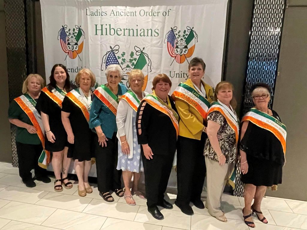 On April 1st, LAOH Cape May County, Division 1, hosted the annual LAOH NJ State Luncheon at the Avalon Links Restaurant in Cape May Courthouse, NJ. Shown below from left are CMC LAOH Division 1 members: Recording Secretary Margie Dirkes, Holly Gibson, Financial Secretary Debbie Smith, Vice President Pat Lang, President Judy McLaughlin, Mistress-at-Arms Mary Livingstone, Catholic Action Jeanette Lamb, Irish Historian Mary Anne Finnegan-Bluhm, Treasurer Tricia Collins, Eleanor Kerr, Mary Beth Tompkins, FFAI Gerri Reed, Chaplain Kathleen Murphy and Kass Russo.