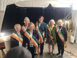 On Friday, October 3rd, AOH and LAOH officers and members gathered for a celebration on the USS New Jersey in Camden to honor Commodore John Barry and the 250th Anniversary of the US Navy along with members of the National AOH/LAOH boards and Irish dignitaries. Pictured L to R: PSP Roseann Michel, PSP Debbie Potkay, State VP Maread Gallagher, State Secretary Kate McGrath, National President Mary Ann Lubinsky and State President Jacoba Kenna.