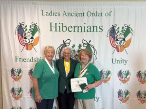 President Jacoba Kenna was reelected for a second term on the NJ LAOH State Board. Congratulations to all the new officers. We wish you much success! Pictured are National Catholic Action Brianna Curran, NJ State President Jacoba Kenna and National President Mary Ann Lubinsky.